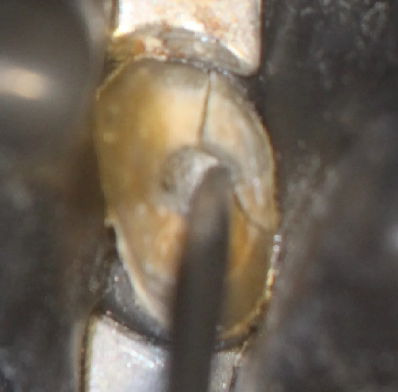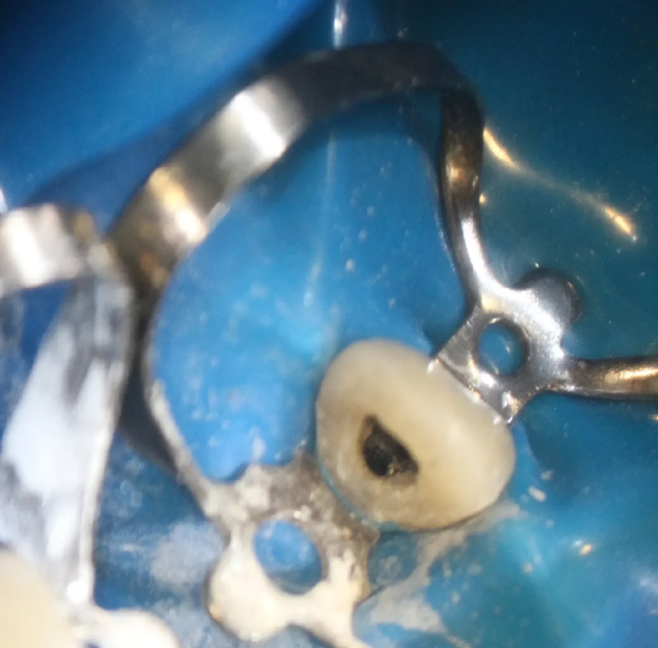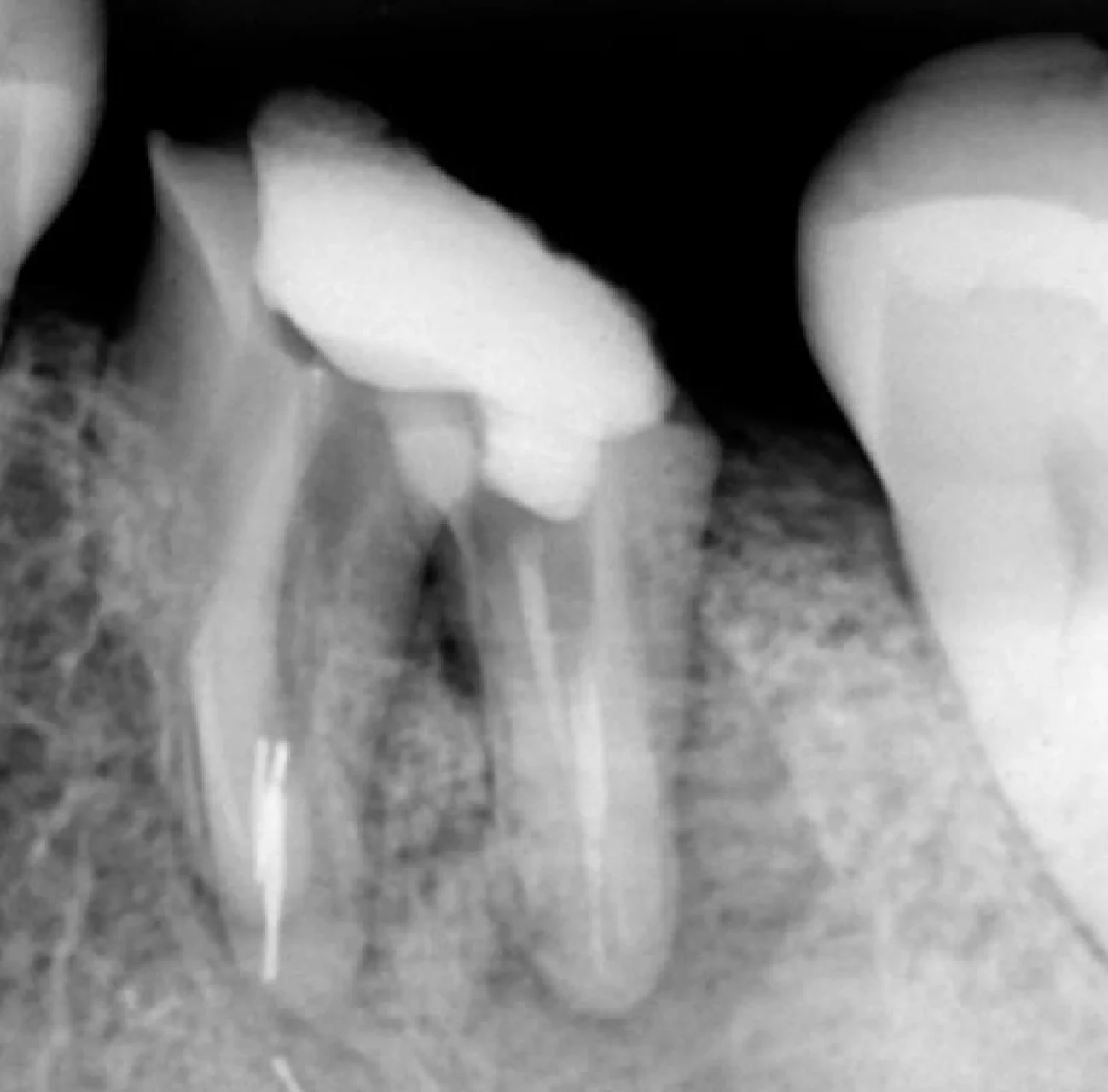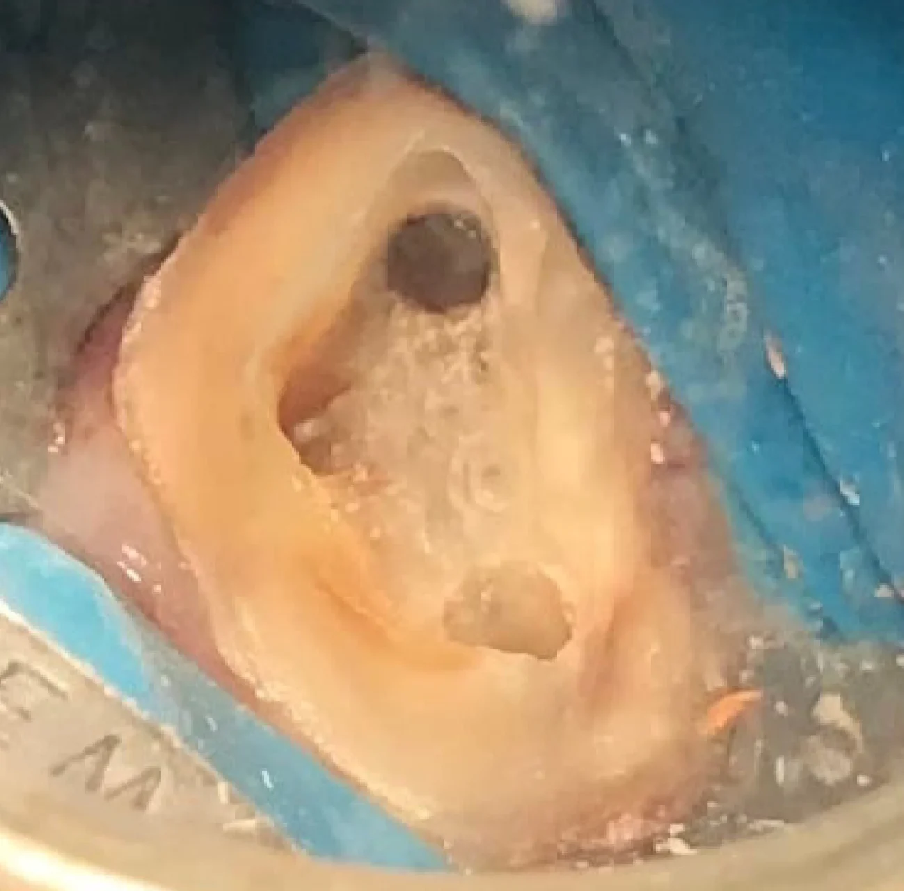 Com melhor visualização, conseguimos remover completamente a polpa infectada e desinfectar todos os canais, reduzindo drasticamente a chance de reinfecção.